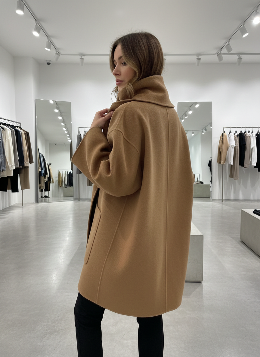 Ontdek de mantel die jouw dagelijkse look direct naar een hoger niveau tilt. Dit is niet zomaar een kledingstuk; het is een fundamenteel stuk voor jouw bewuste garderobe. Voel je direct verzorgd en vrouwelijk, zonder enige moeite.