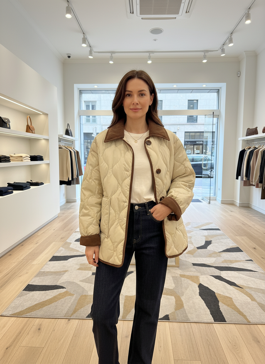 Dit gewatteerde item is de ultieme aanvulling op jouw garderobe; een stuk dat comfort en verfijning naadloos combineert. Het is het essentiële item voor moeiteloze elegantie.