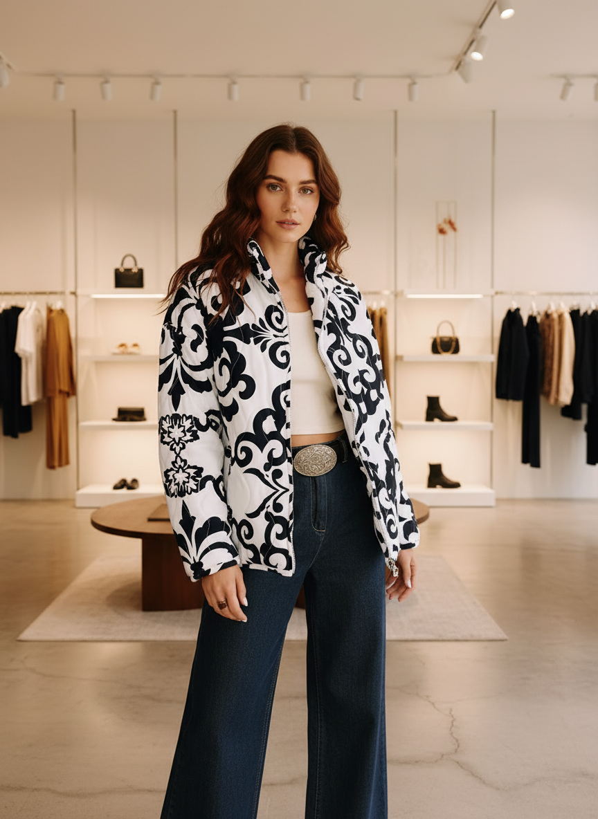 Stijlvol Gewatteerd Jack met Barokprint voor Dames