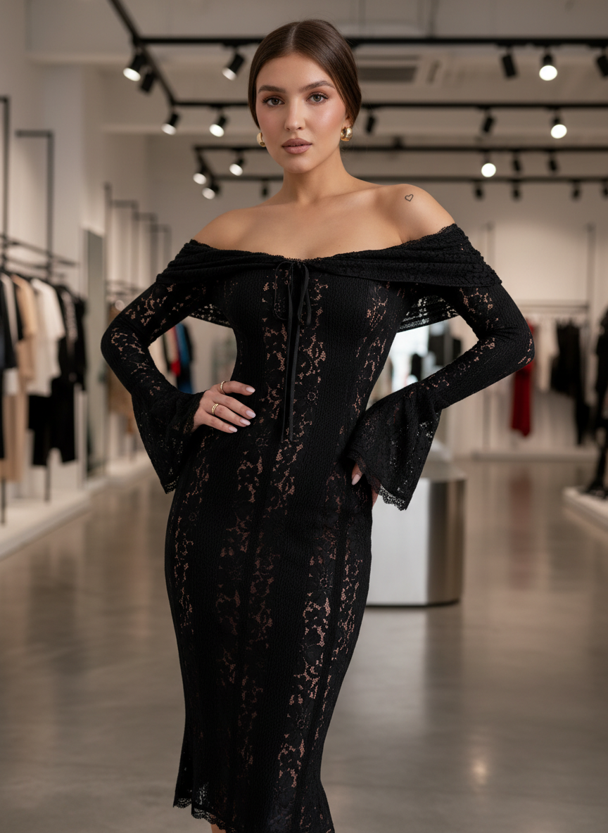 Verfijnde Kanten Off-Shoulder Maxi Jurk: Jouw Elegante Statement