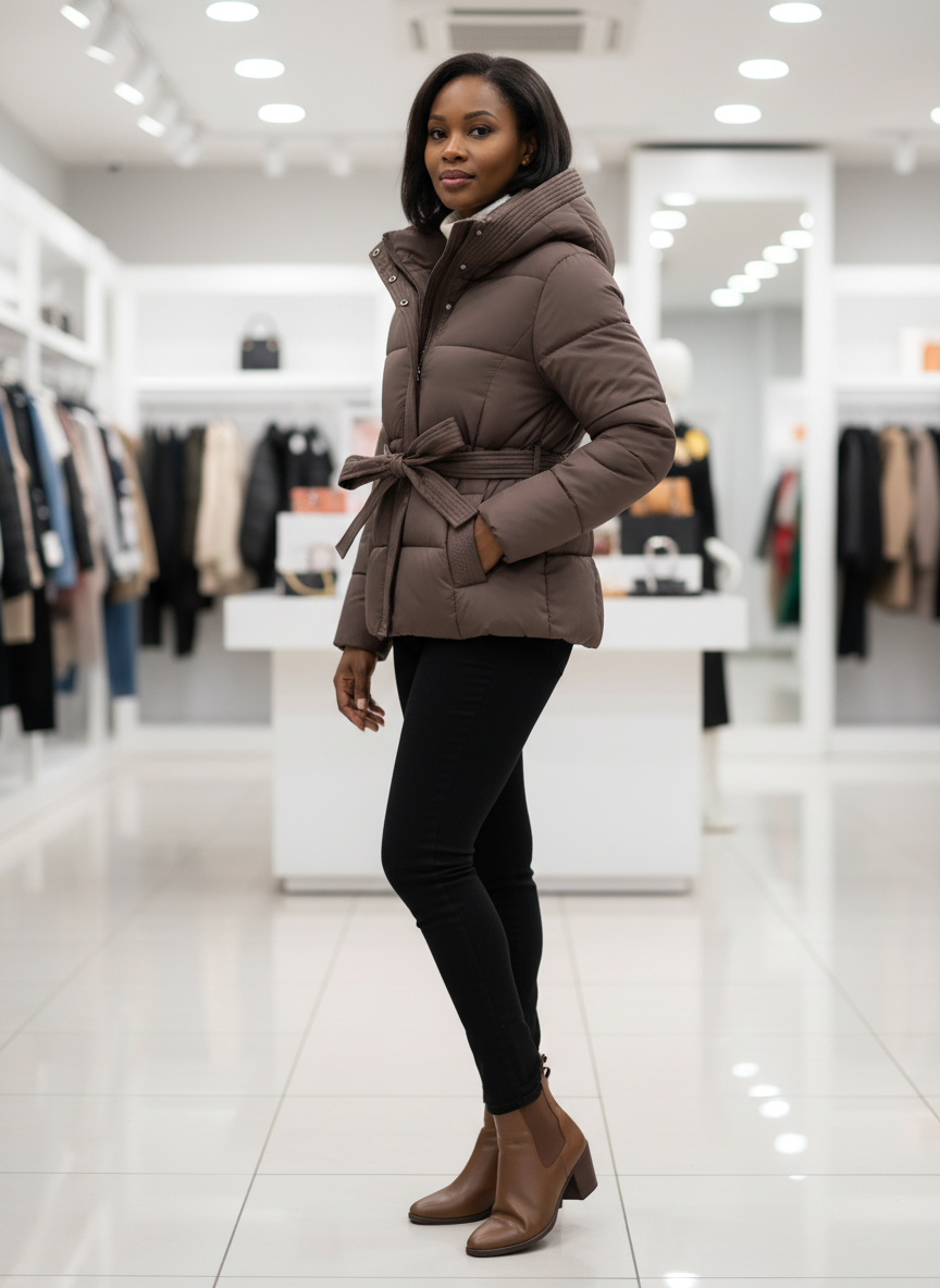 Gewatteerde Winterjas met Ceintuur voor een Chic Silhouet