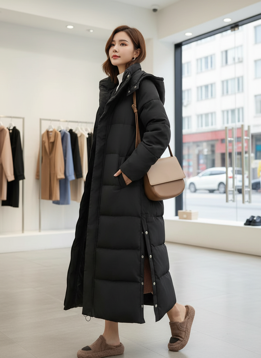 Lange Pufferjas met Capuchon: Stijlvolle Warmte voor de Winter