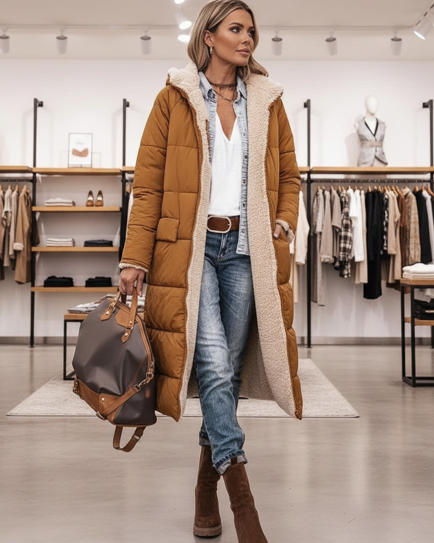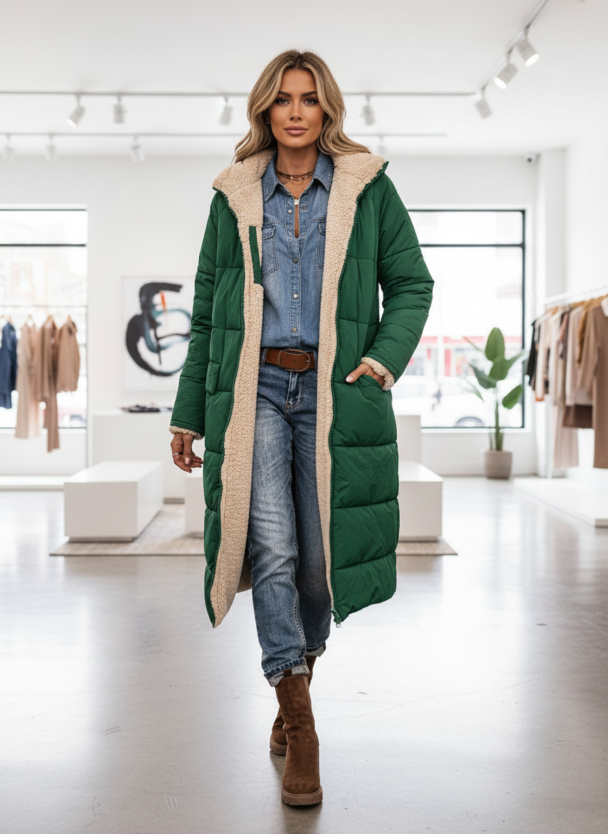 Warme Lange Pufferjas met Superzachte Sherpa Voering