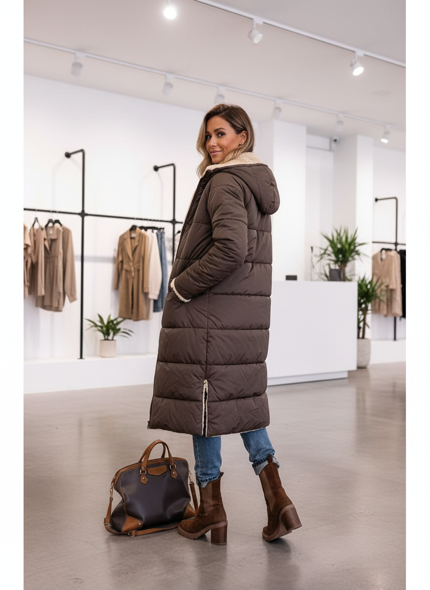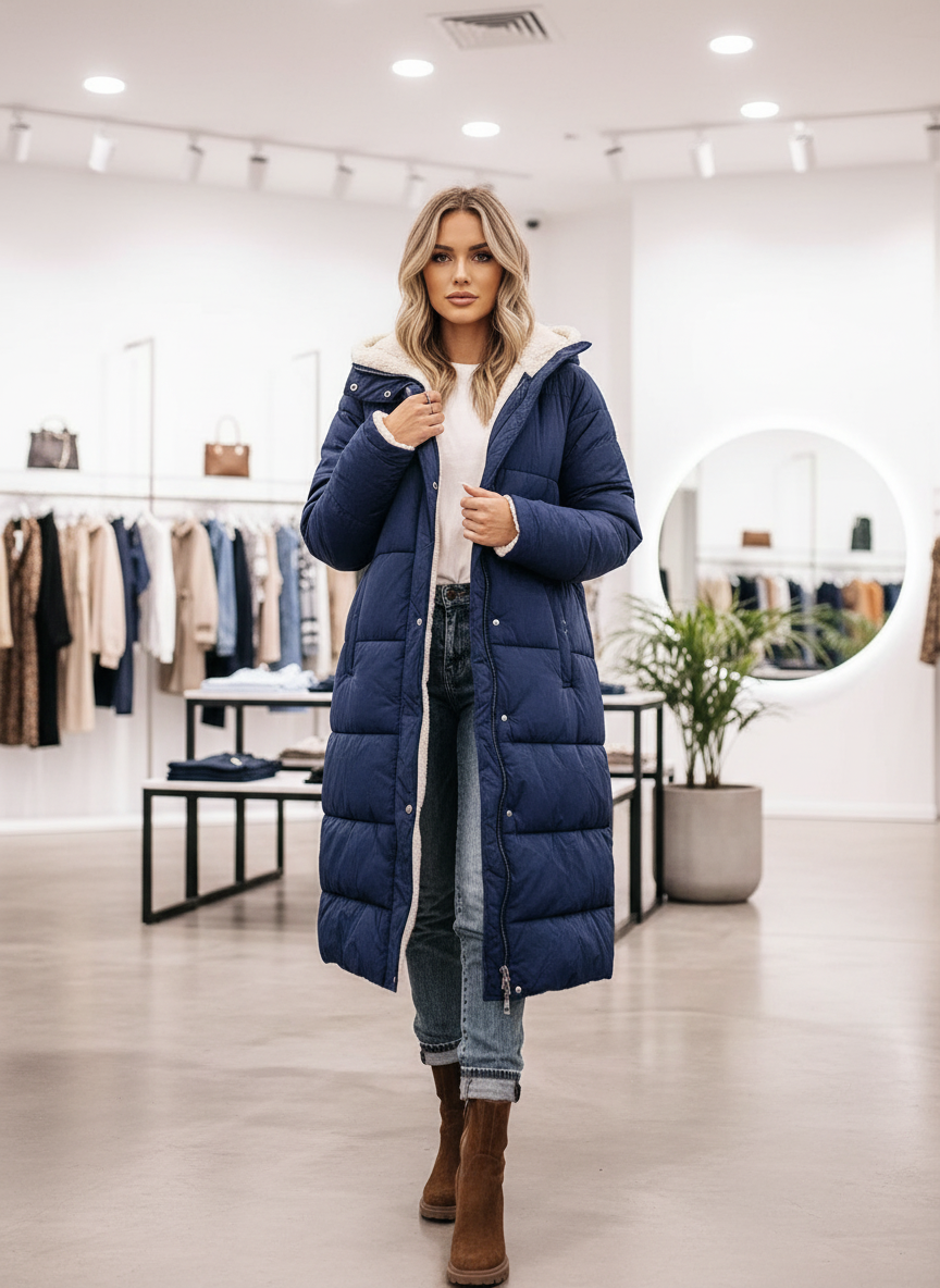 Ontdek de perfecte balans tussen ingetogen luxe en onmisbare warmte. Deze lange puffer jas is ontworpen voor de vrouw die weet dat comfort en stijl hand in hand gaan, zonder concessies.