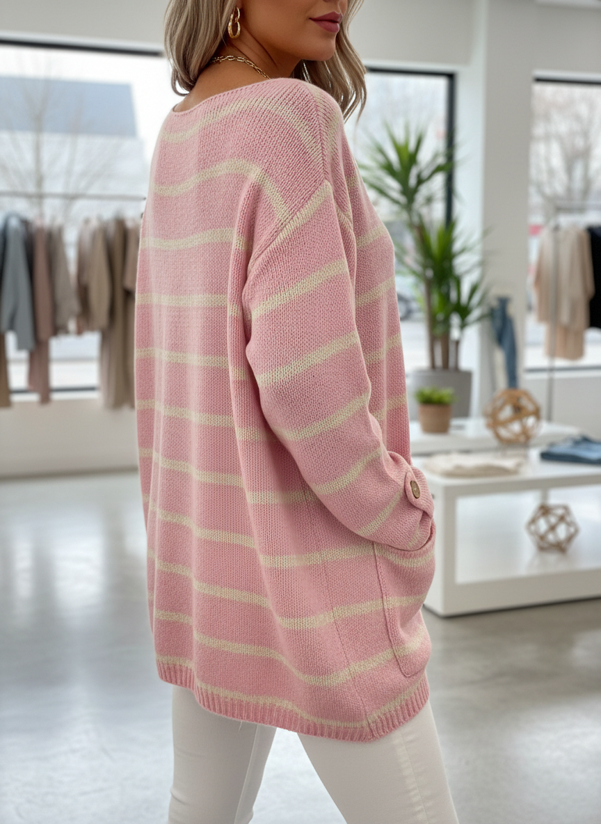 Chique Gestreept Gebreid Dames Trui met Handige Zakken