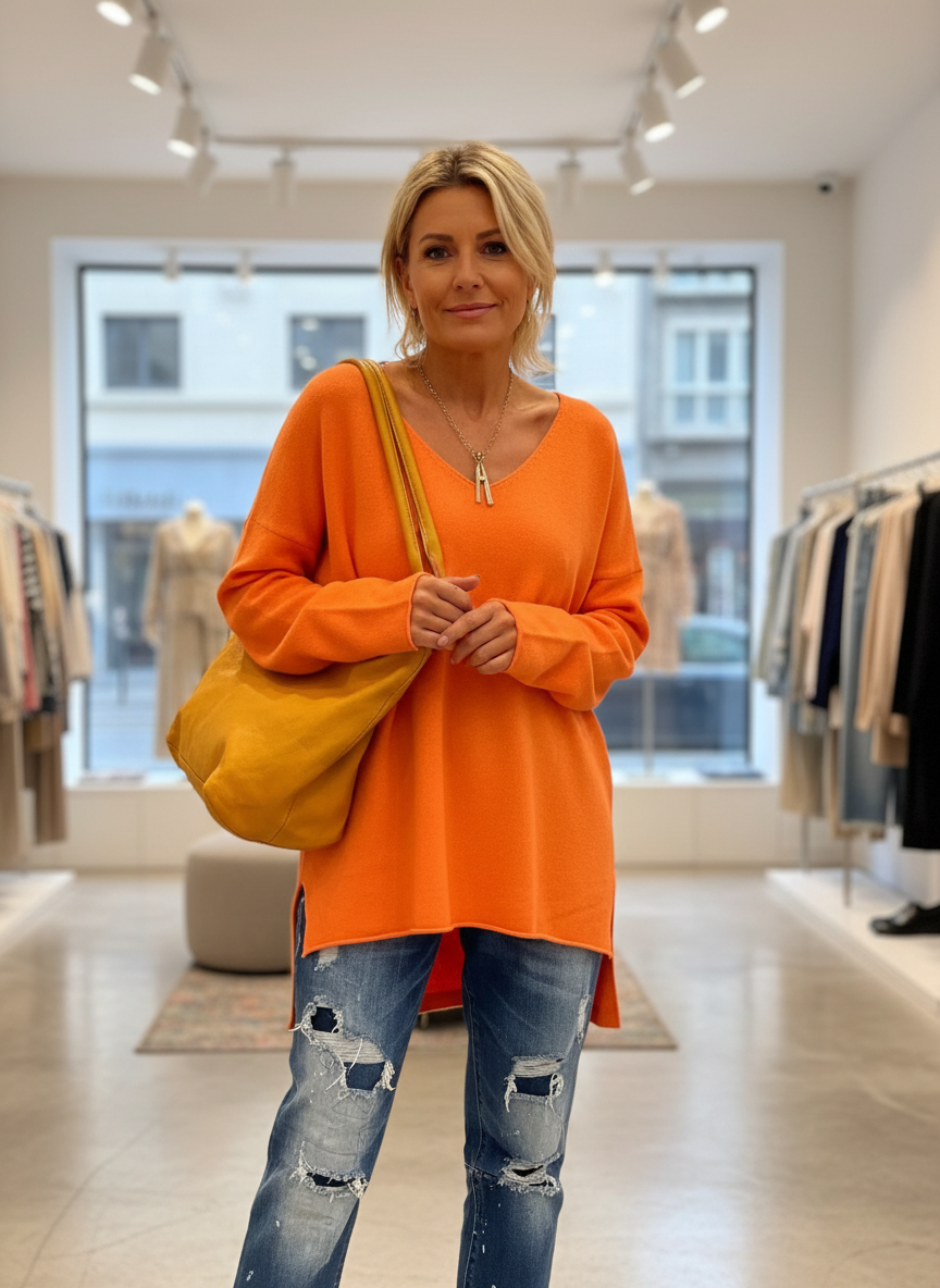 De Zachtheid van Oranje: Jouw Nieuwe Comfortabele V-hals